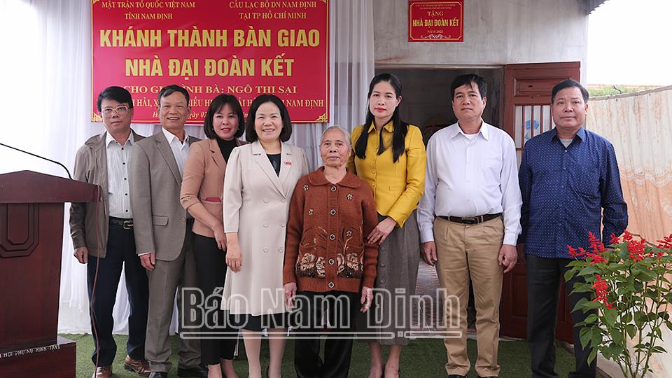 | Ủy ban MTTQ tỉnh và Câu lạc bộ doanh nhân Nam Định tại thành phố Hồ Chí Minh bàn giao nhà “Đại đoàn kết” cho bà Ngô Thị Sại ở xóm Minh Hải, xã Hải Triều (Hải Hậu). |
