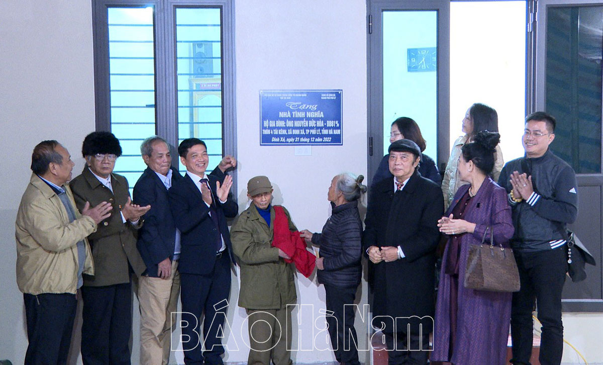 UBND xã Đinh Xá (thành phố Phủ Lý) vừa tổ chức lễ khánh thành và bàn giao nhà tình nghĩa cho ông Nguyễn Đức Hòa - Bệnh binh 61% thôn 4 Tái Kênh. Dự lễ bàn giao có đồng chí Nguyễn Đức Toàn, Ủy viên BTV Tỉnh ủy, Bí thư Thành ủy, Chủ tịch HĐND thành phố Phủ Lý.