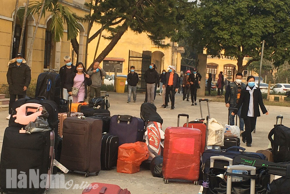 Các công dân hết thời gian cách ly được bàn giao chuẩn bị hành lý trở về gia đình, địa phương. Ảnh: Nguyễn Văn Hiển