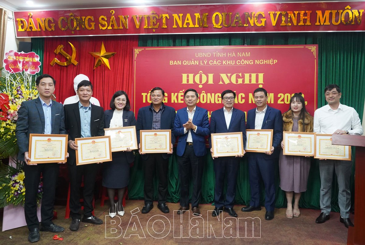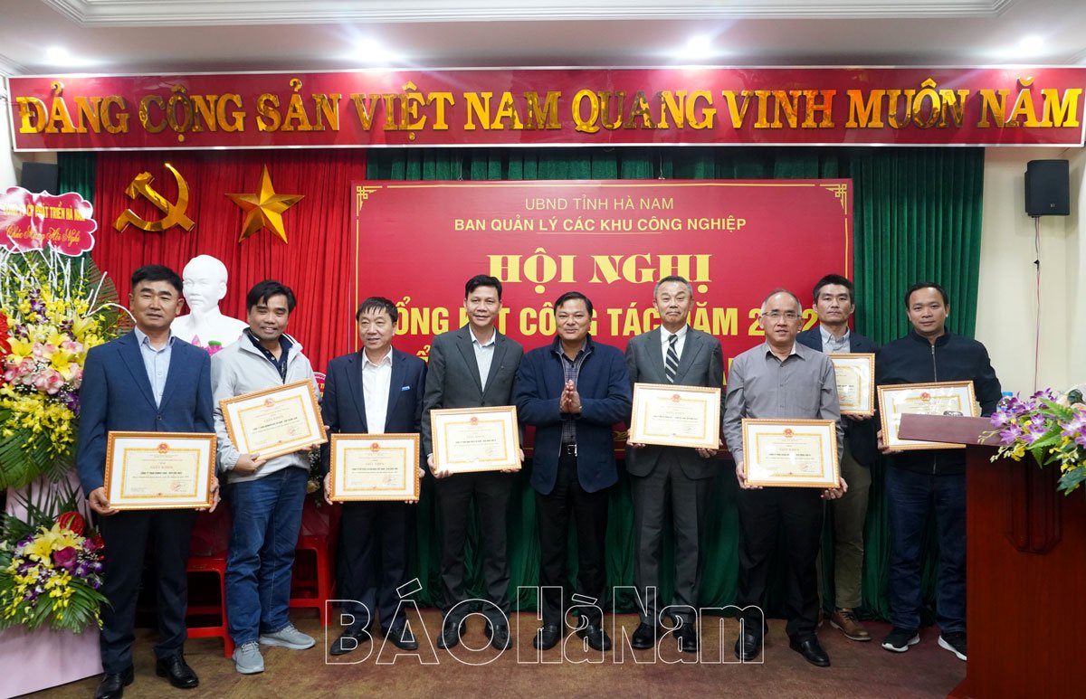 Nhân dịp này, 9 doanh nghiệp và các tập thể, cá nhân của BQL các KCN tỉnh có thành tích xuất sắc trong hoạt động, công tác năm 2022 đã được BQL các KCN tỉnh tặng giấy khen; 8 cá nhân được tặng danh hiệu “Chiến sĩ thi đua cơ sở”. 1 tập thể lao động xuất sắc được Chủ tịch UBND tỉnh khen thưởng.