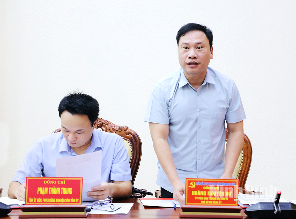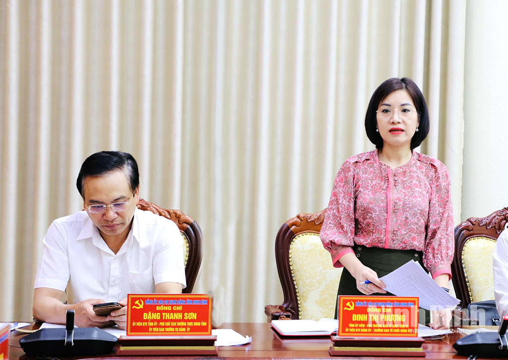Đại diện Ban Tuyên giáo và Dân vận Tỉnh ủy phát biểu tại hội nghị.Đồng chí Đinh Thị Phượng, Tỉnh ủy viên, Phó Trưởng Ban Tổ chức Tỉnh ủy phát biểu tại hội nghị.Đồng chí Hoàng Nguyên Dự, Ủy viên Ban Thường vụ Tỉnh ủy, Phó Bí thư Thường trực Đảng ủy các cơ quan Đảng tỉnh phát biểu tại hội nghị.Đồng chí Đặng Thanh Sơn, Ủy viên Ban Thường vụ Tỉnh ủy, Phó Chủ tịch Thường trực HĐND tỉnh phát biểu tại hội nghị.