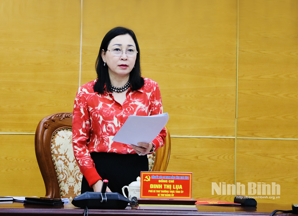 Đồng chí Đinh Thị Lụa, Phó Bí thư Thường trực Tỉnh ủy, Bí thư Đảng ủy các cơ quan Đảng tỉnh phát biểu kết luận hội nghị.