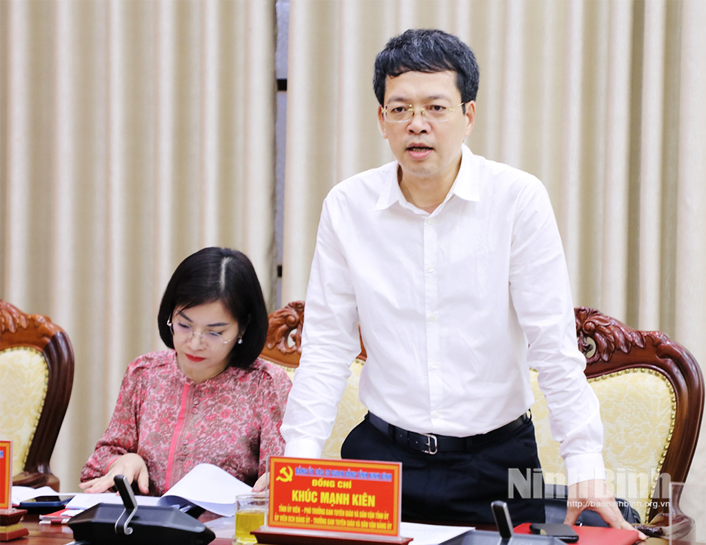 Đại diện lãnh đạo Báo và phát thanh, truyền hình Ninh Bình phát biểu tại hội nghị.