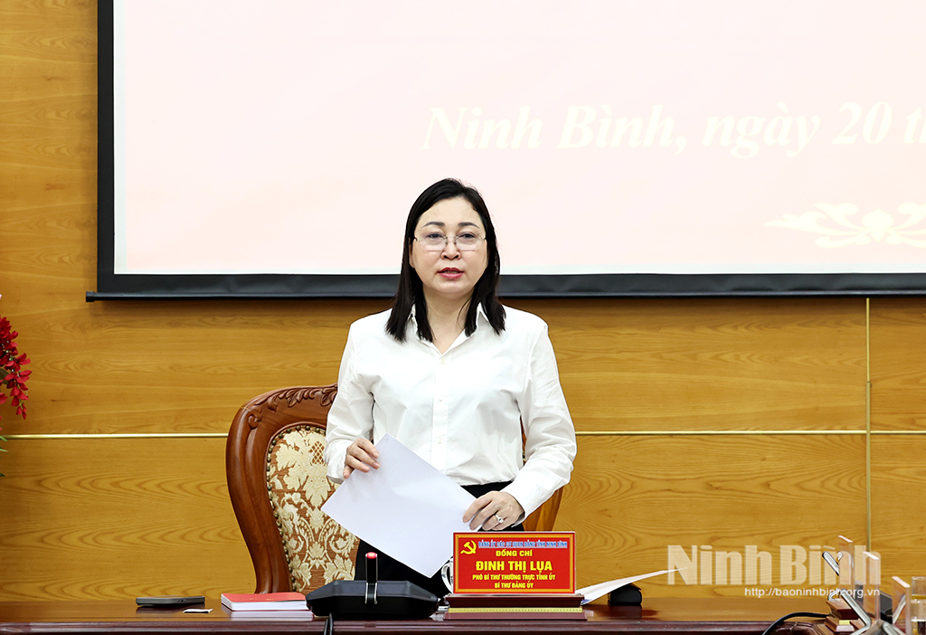 Đồng chí Đinh Thị Lụa, Phó Bí thư Thường trực Tỉnh ủy, Bí Thư Đảng ủy các cơ quan Đảng tỉnh phát biểu chỉ đạo hội nghị.