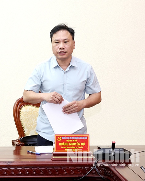 Đồng chí Hoàng Nguyên Dự, Ủy viên Ban Thường vụ Tỉnh ủy, Phó Bí thư Thường trực Đảng ủy các cơ quan Đảng tỉnh phát biểu tại hội nghị.
