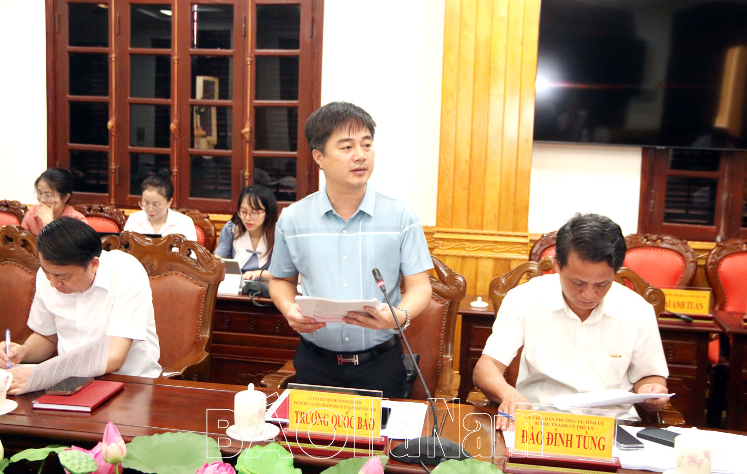 Đồng chí Trương Quốc Bảo, Phó Bí thư chuyên trách Đảng ủy UBND tỉnh báo cáo các nội dung KT-XH xin ý kiến, chủ trương của BTV Tỉnh ủy.