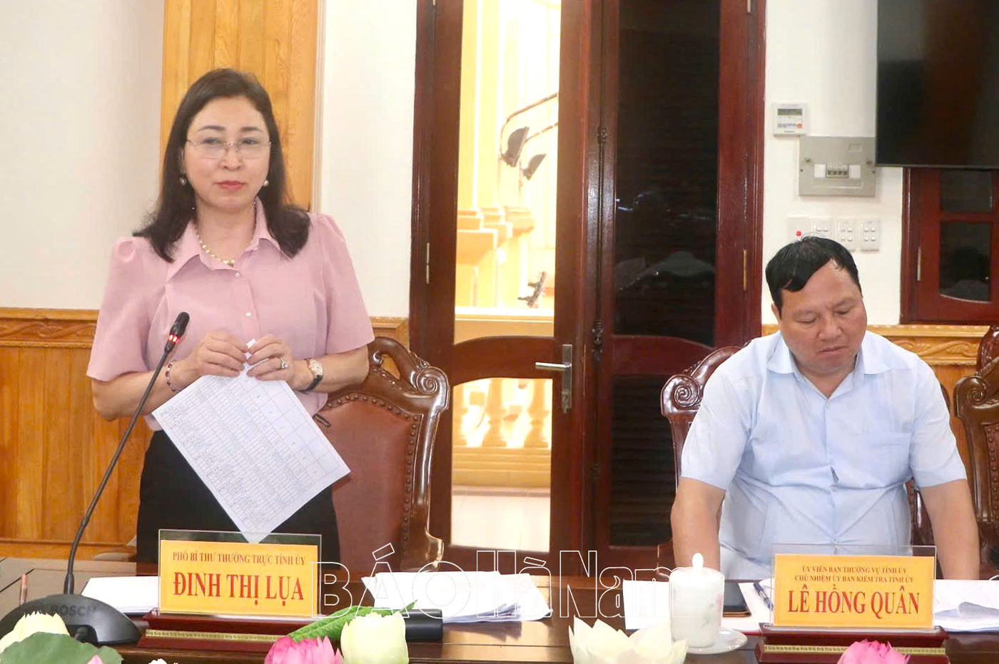 Đồng chí Phó Bí thư Thường Trực Tỉnh ủy Đinh Thị Lụa phát biểu ý kiến thảo luận.