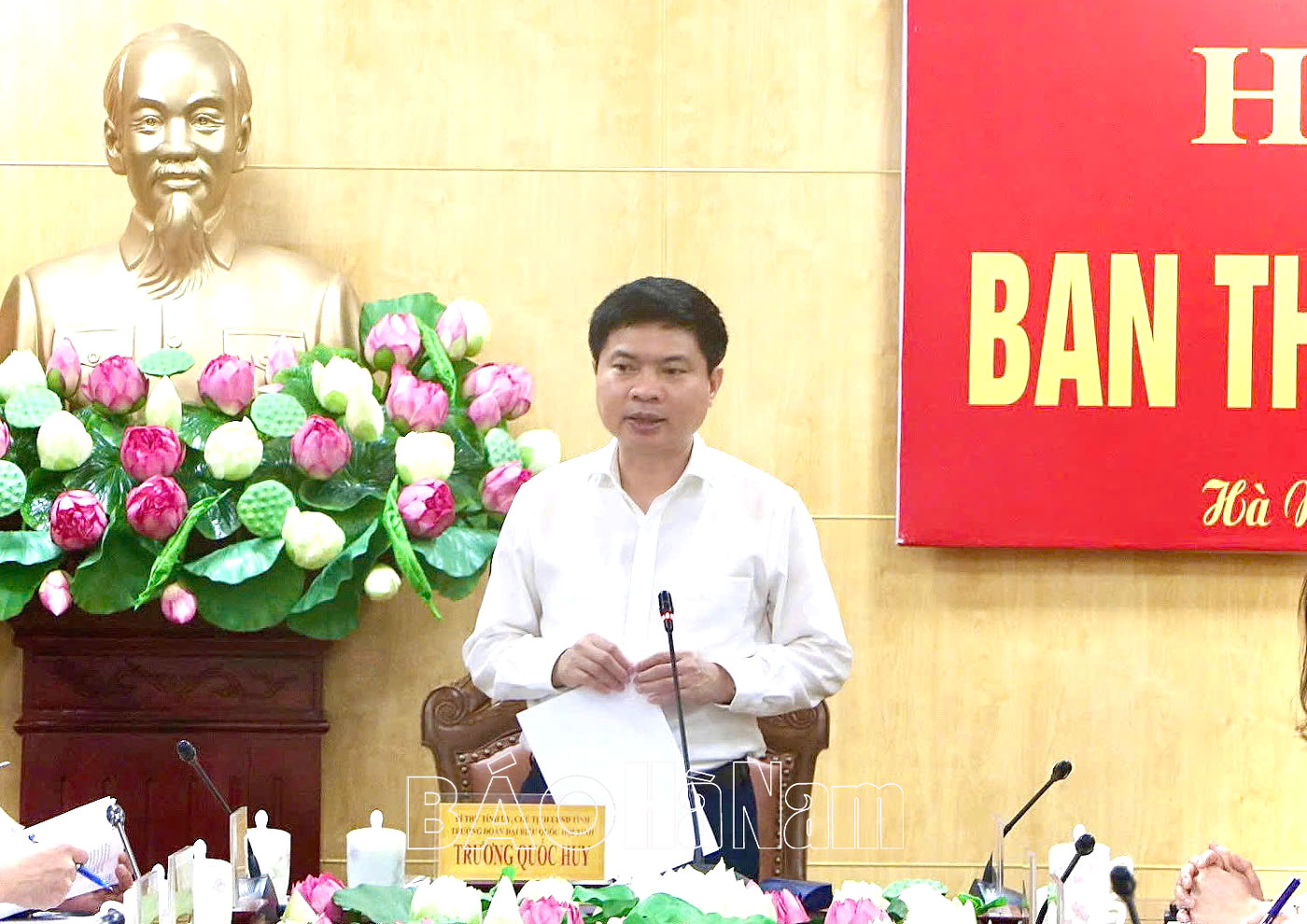 Phát biểu kết luận các nội dung này, đồng chí Bí thư Tỉnh ủy Trương Quốc Huy giao Văn phòng Tỉnh ủy hoàn thiện thông báo, giao Đảng ủy UBND tỉnh chỉ đạo các sở, ngành triển khai thực hiện. Về đồ án điều chỉnh Quy hoạch xây dựng vùng huyện Lý Nhân, giao Sở Xây dựng hoàn thiện quy hoạch để triển khai thực hiện.