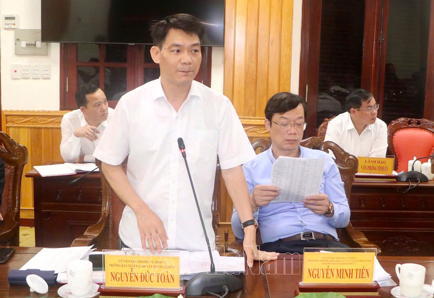 Đồng chí Nguyễn Đức Toàn, Ủy viên BTV Tỉnh ủy, Trưởng Ban Tuyên giáo và Dân vận Tỉnh ủy phát biểu thảo luận.