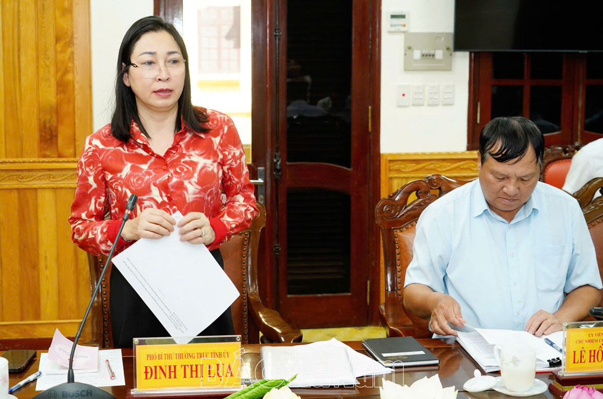 Đồng chí Định Thị Lụa, Phó Bí thư Thường trực Tỉnh ủy phát biểu tại hội nghị.