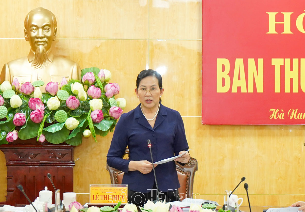 Đồng chí Bí thư Tỉnh ủy Lê Thị Thủy phát biểu tại hội nghị.