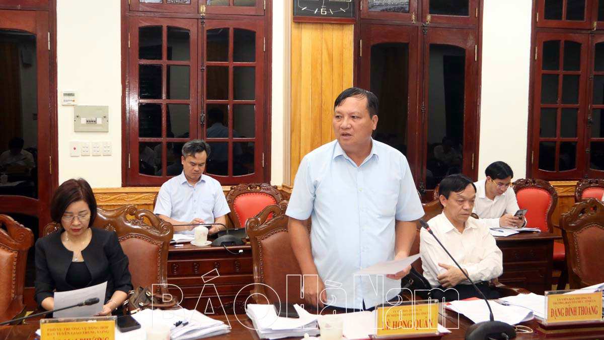 Ban cán sự Đảng UBND tỉnh báo cáo các nội dung xin ý kiến, chủ trương của BTV Tỉnh ủy để trình tại Kỳ họp chuyên đề HĐND tỉnh năm 2023, gồm: Định mức xây dựng dự toán kinh phí đối với nhiệm vụ khoa học và công nghệ có sử dụng ngân sách nhà nước trên địa bàn tỉnh Hà Nam; Chủ trương chuyển mục đích sử dụng rừng sang mục đích khác để thực hiện các dự án năm 2023 trên địa bàn tỉnh Hà Nam; Danh mục các dự án cần thu hồi đất, dự án chuyển mục đích sử dụng dưới 10 ha đất trồng lúa bổ sung năm 2023 trên địa bàn tỉnh Hà Nam; Quy hoạch tỉnh Hà Nam thời kỳ 2021-2030, tầm nhìn đến năm 2050; Hỗ trợ chi phí xét nghiệm Covid-19 trong phòng chống dịch năm 2021 trên địa bàn tỉnh Hà Nam; Miễn nhiệm, bầu bổ sung Ủy viên UBND tỉnh Hà Nam khóa XIX, nhiệm kỳ 2021 – 2026; Kéo dài thời gian bố trí vốn thực hiện dự án cho dự án xử lý chống sạt lở mái, thân đê tả Duy Tiên và chắn nước Hà Tây đoạn từ bể xả trạm bơm Bút đến K8+931,29 huyện Duy Tiên (nay là thị xã Duy Tiên); Giao kế hoạch đầu tư công năm 2023 do cấp tỉnh quản lý điều chỉnh các nội dung đã báo cáo Ban Chấp hành Đảng bộ tỉnh tại Hội nghị ngày 27/9/2023).