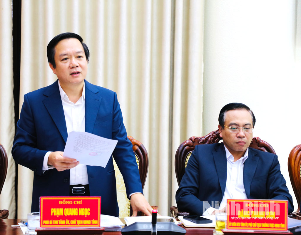 Đồng chí Phạm Quang Ngọc, Phó Bí thư Tỉnh ủy, Chủ tịch UBND tỉnh phát biểu tại hội nghị.