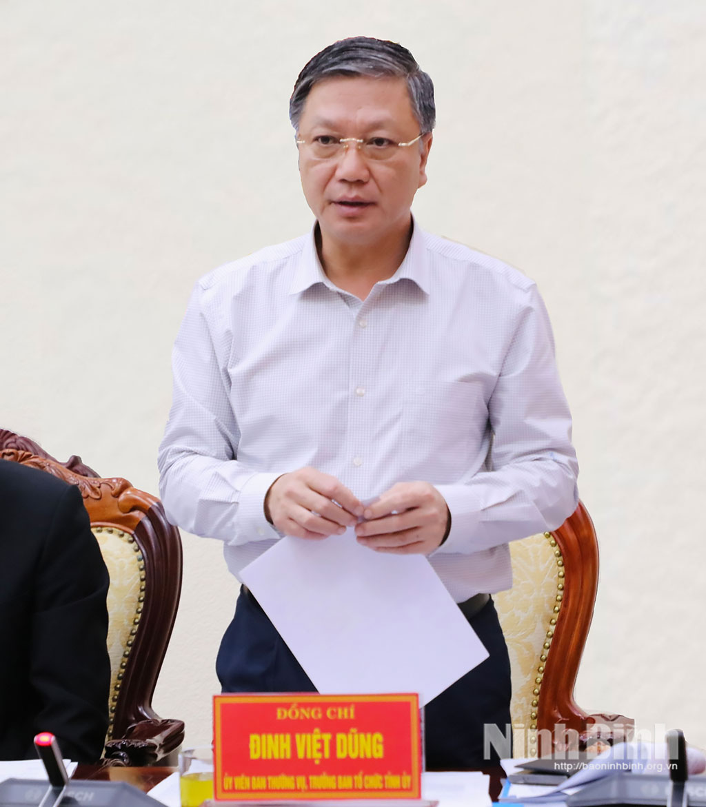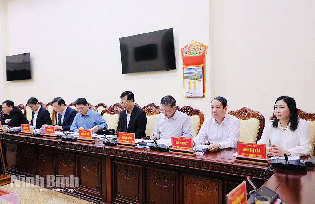 Đồng chí Bí thư Tỉnh ủy đề nghị các đồng chí Ủy viên Ban Thường vụ Tỉnh ủy tăng cường công tác lãnh đạo, chỉ đạo; yêu cầu các cấp, các ngành, địa phương đẩy mạnh công tác tuyên truyền, vận động cán bộ, đảng viên, nhân dân tiếp tục thực hiện tốt chủ trương, đường lối của Đảng, chính sách, pháp luật của Nhà nước, đưa nghị quyết đại hội đảng bộ các cấp và Nghị quyết Đại hội Đảng bộ tỉnh Ninh Bình lần thứ I, nhiệm kỳ 2025-2030 nhanh chóng đi vào cuộc sống, xây dựng quê hương Ninh Bình ngày càng phát triển.