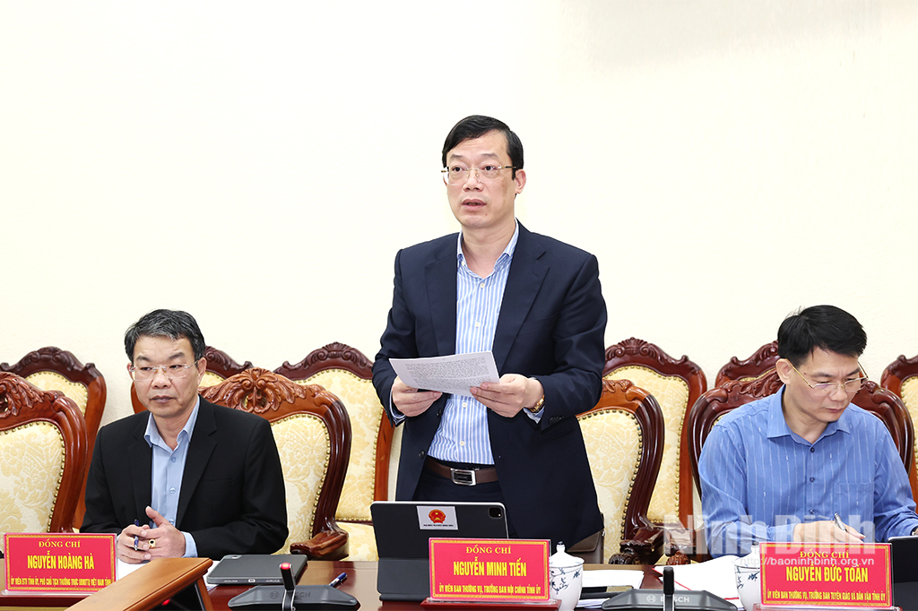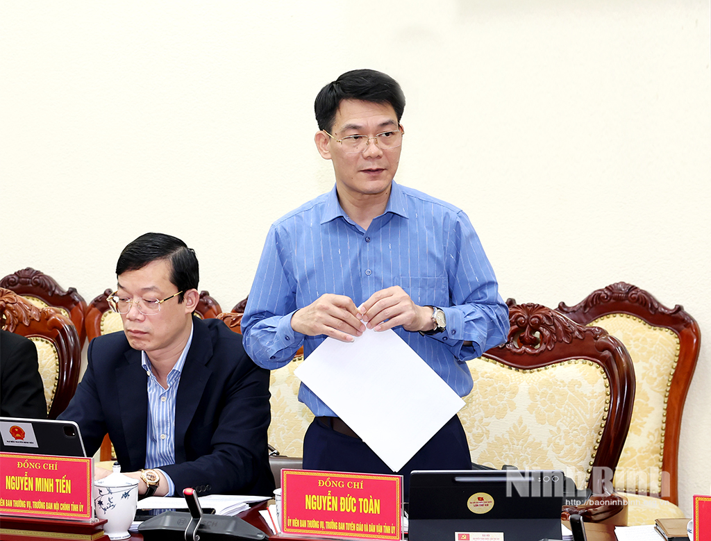 Đồng chí Nguyễn Đức Toàn, Ủy viên Ban Thường vụ Tỉnh ủy, Trưởng Ban Tuyên giáo và Dân vận Tỉnh ủy phát biểu tại Hội nghị.Đồng chí Nguyễn Minh Tiến, Ủy viên Ban Thường vụ Tỉnh ủy, Trưởng Ban Nội chính Tỉnh uỷ phát biểu tại Hội nghị.Đồng chí Đặng Thanh Sơn, Ủy viên Ban Thường vụ Tỉnh ủy, Phó Chủ tịch UBND tỉnh phát biểu tại Hội nghị.