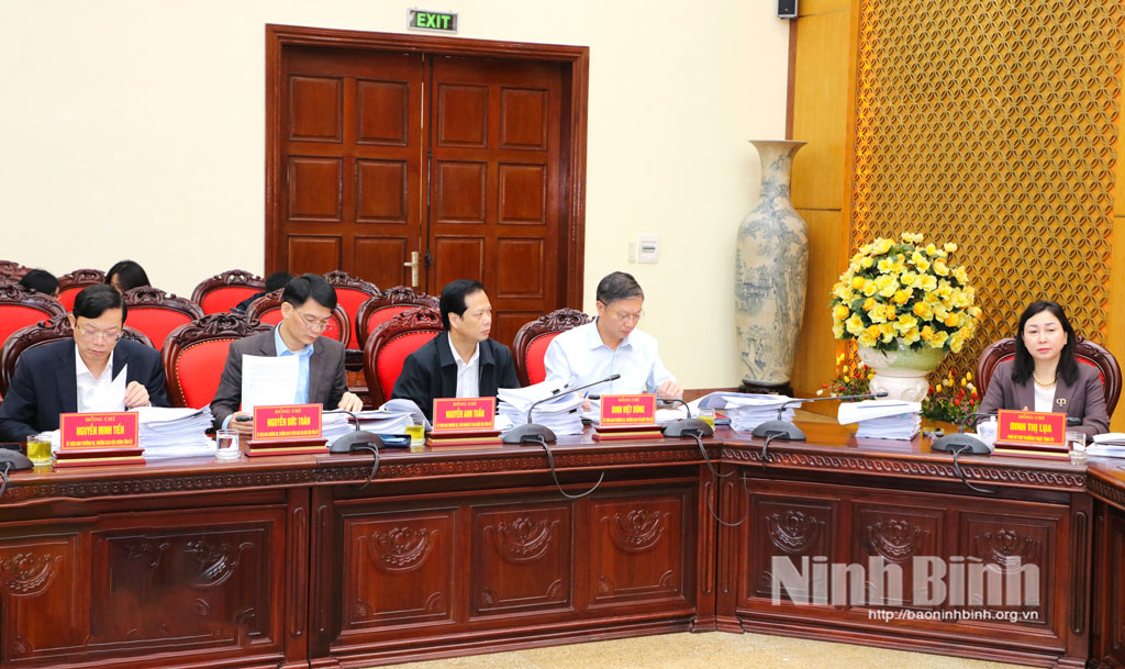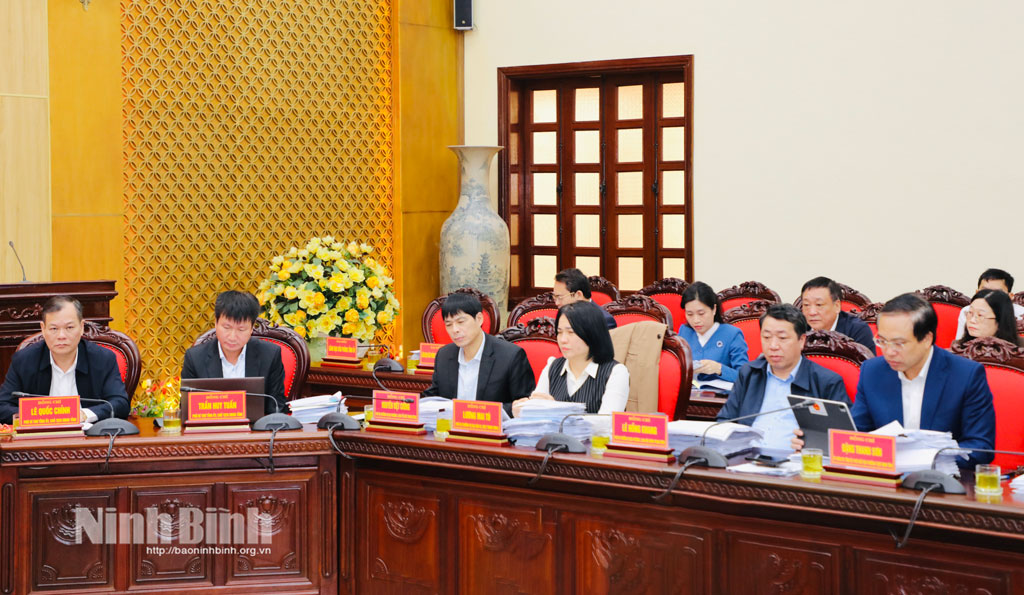Trong chương trình hội nghị, Ban Thường vụ Tỉnh ủy đã thảo luận, cho ý kiến về dự thảo Báo cáo tổng kết công tác kiểm tra, giám sát của Đảng năm 2025; phương hướng, nhiệm vụ trọng tâm năm 2026; về việc ban hành Đề án tổng thể thực hiện chế độ tự chủ, tự chịu trách nhiệm về sử dụng biên chế và kinh phí quản lý hành chính trong các đơn vị dự toán trực thuộc Tỉnh ủy giai đoạn 2025 - 2030; Báo cáo kết quả giải quyết công việc giữa 2 kỳ họp Ban Thường vụ Tỉnh ủy. Cho ý kiến về dự kiến cơ cấu, thành phần và phân bổ số lượng người được giới thiệu ứng cử đại biểu HĐND tỉnh nhiệm kỳ 2026-2031; dự kiến cơ cấu nhân sự ứng cử đại biểu Quốc hội khóa XVI; về việc tổ chức Đại hội Đoàn TNCS Hồ Chí Minh tỉnh Ninh Bình.