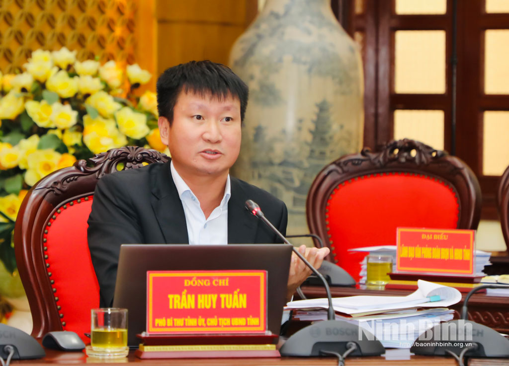 Đồng chí Trần Huy Tuấn, Phó Bí thư Tỉnh ủy, Chủ tịch UBND tỉnh phát biểu tại hội nghị.