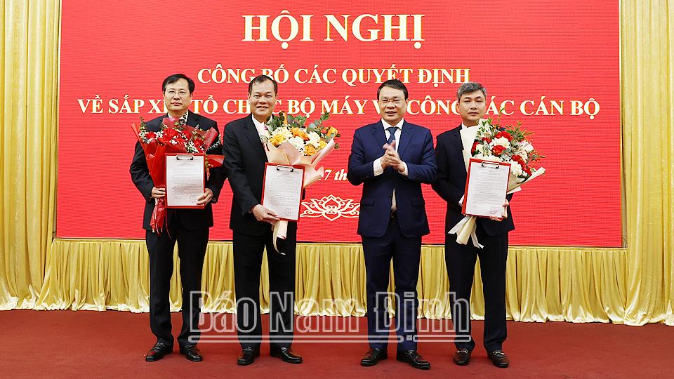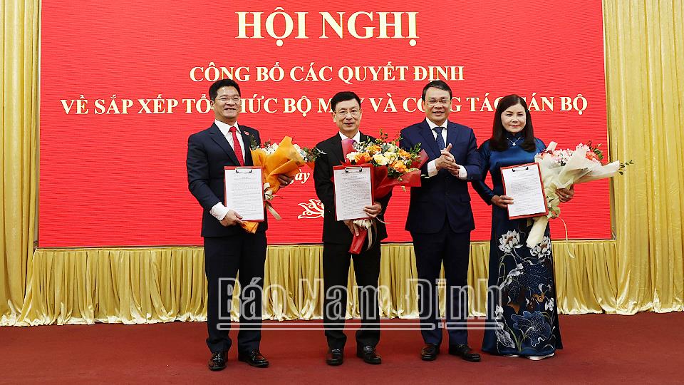 Tại hội nghị, đồng chí Bí thư Tỉnh uỷ Đặng Khánh Toàn đã trao các Quyết định của Ban TVTU và tặng hoa chúc mừng Đảng bộ các cơ quan Đảng tỉnh; Đảng bộ UBND tỉnh; Ban Tuyên giáo và Dân vận Tỉnh ủy; các đồng chí được phân công giữ trọng trách trong các đơn vị mới thành lập, hợp nhất.