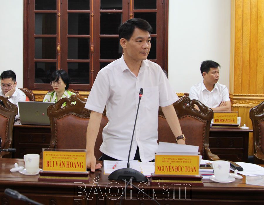 Tiếp đó, BTV Tỉnh ủy cho ý kiến, cho chủ trương các nội dung về kinh tế-xã hội (KT-XH) theo thẩm quyền, gồm: Chủ trương nghiên cứu vị trí đóng quân Trạm Hà Nam, Tiểu đoàn 82, Lữ đoàn 134, Binh chủng Thông tin liên lạc tại xã Liêm Chung, thành phố Phủ Lý; Về chủ trương đầu tư Dự án chỉnh trang đô thị kết hợp xây dựng khu nhà ở phía bắc hồ Lam Hạ, thành phố Phủ Lý; về điều chỉnh chủ trương đầu tư Dự án xây dựng hạ tầng kỹ thuật khu nhà ở phục vụ Khu công nghiệp Đồng Văn, huyện Duy Tiên (nay là thị xã Duy Tiên); Về việc điều chỉnh chủ trương đầu tư Dự án xây dựng công trình khai thác đá vôi làm nguyên liệu xi măng của Công ty Cổ phần Xi măng Long Thành tại xã Thanh Sơn, huyện Kim Bảng, tỉnh Hà Nam; Về Quy hoạch phân khu tỷ lệ 1/2000 Khu đô thị sinh thái Phù Vân, thành phố Phủ Lý; Về Quy hoạch phân khu tỷ lệ 1/2000 Khu vực phía Đông đường cao tốc Cầu Giẽ - Ninh Bình thuộc phân khu 6 theo đồ án điều chỉnh Quy hoạch chung thành phố Phủ Lý đến năm 2030, tầm nhìn đến năm 2050; Về Quy hoạch chung thị trấn Tân Thanh, huyện Thanh Liêm.
