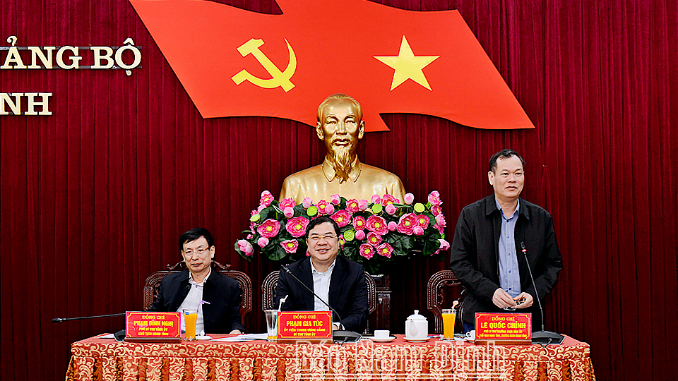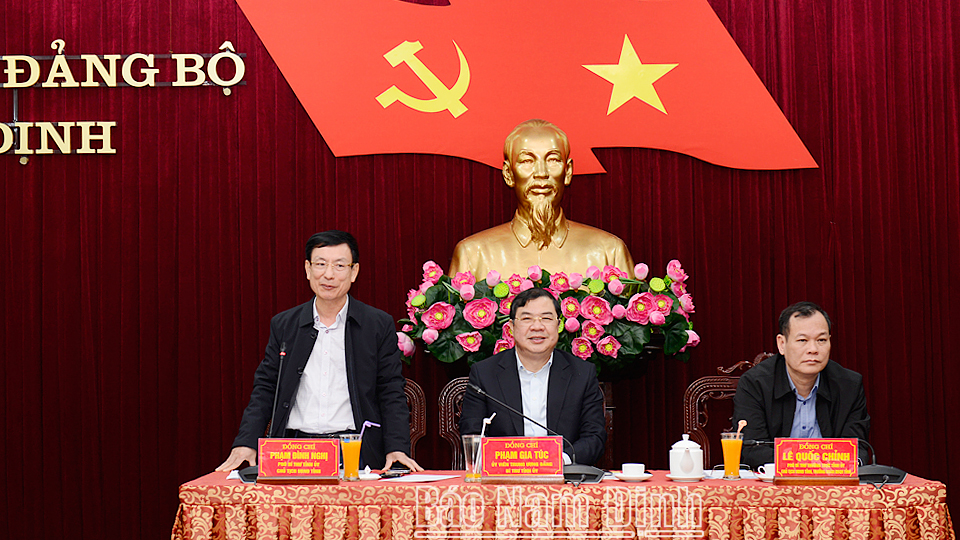 Ngày 31-1, Ban TVTU tổ chức hội nghị đánh giá tình hình tổ chức Tết Nguyên đán Quý Mão; cho ý kiến về việc triển khai nhiệm vụ công tác trọng tâm những tháng đầu năm 2023; phương án tổ chức Lễ hội Khai ấn Đền Trần năm 2023. Các đồng chí: Phạm Gia Túc, Ủy viên BCH Trung ương Đảng, Bí thư Tỉnh ủy; Lê Quốc Chỉnh, Phó Bí thư Thường trực Tỉnh ủy, Chủ tịch HĐND tỉnh, Trưởng đoàn Đoàn đại biểu Quốc hội tỉnh; Phạm Đình Nghị, Phó Bí thư Tỉnh ủy, Chủ tịch UBND tỉnh chủ trì hội nghị.