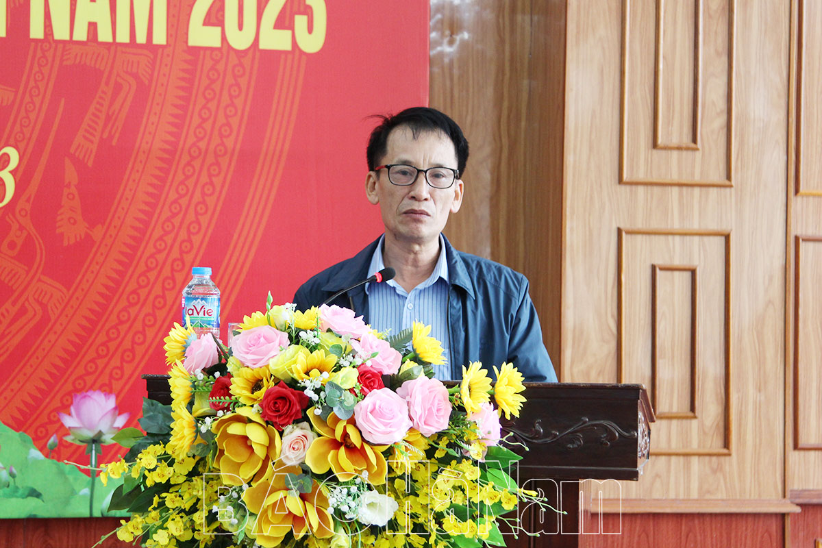 Đồng chí Nguyễn Tiến Ninh, Phó trưởng Ban Tổ chức Tỉnh ủy khai mạc tập huấn.