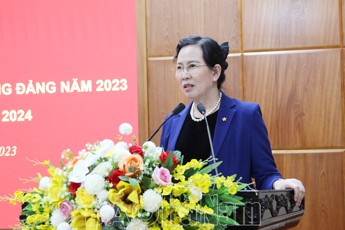 Trong năm đã kết nạp 1.147 đảng viên, tăng 20% so với năm 2022. Công tác tổ chức bộ máy, quy hoạch cán bộ, bổ nhiệm, bổ nhiệm lại, giới thiệu ứng cử, luân chuyển, điều động, đào tạo, bồi dưỡng cán bộ; công tác chính sách cán bộ, bảo vệ và chăm sóc sức khỏe cán bộ được triển khai thực hiện tốt. Bên cạnh đó, công tác bảo vệ chính trị nội bộ bảo đảm các yêu cầu đề ra... Tăng cường phối hợp và tổ chức thực hiện hoàn thành nhiệm vụ kiểm tra, giám sát về công tác tổ chức xây dựng Đảng. Phối hợp tham mưu tích cực triển khai hưởng ứng Giải báo chí toàn quốc về Xây dựng Đảng lần thứ 8 - năm 2023.