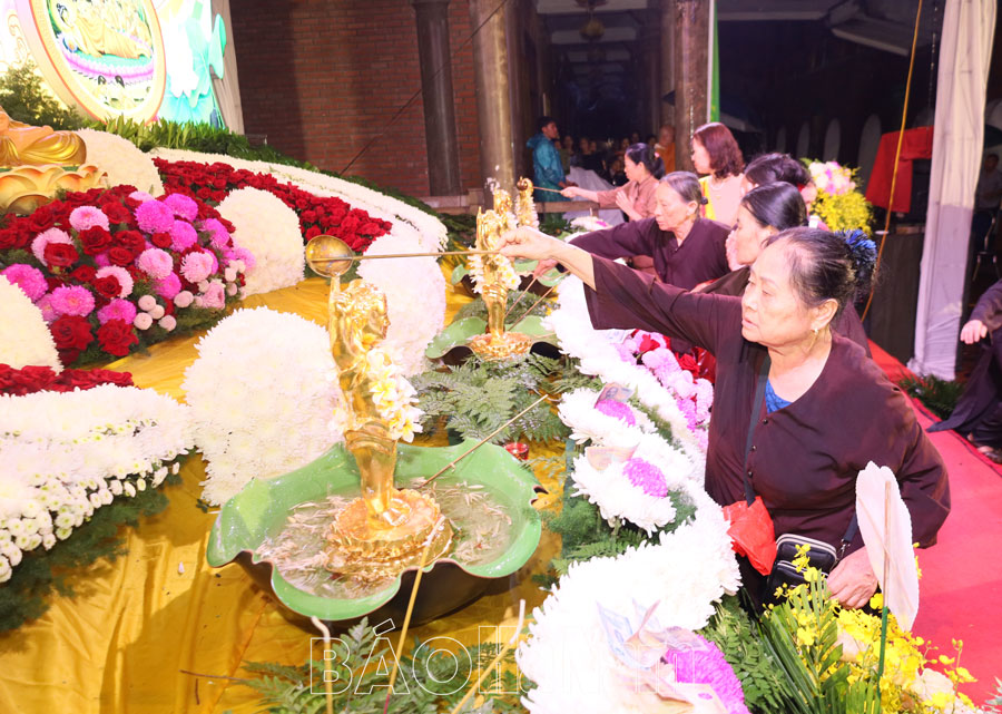 Trong không khí trang trọng, chư tôn đức cùng toàn thể phật tử cử hành nghi lễ dâng hương và nghi thức tắm Phật, thể hiện lòng tôn kính dâng lên Đức Thế Tôn - bậc Đạo sư tối thượng, nguyện noi theo hạnh nguyện từ bi, trí tuệ và giải thoát.