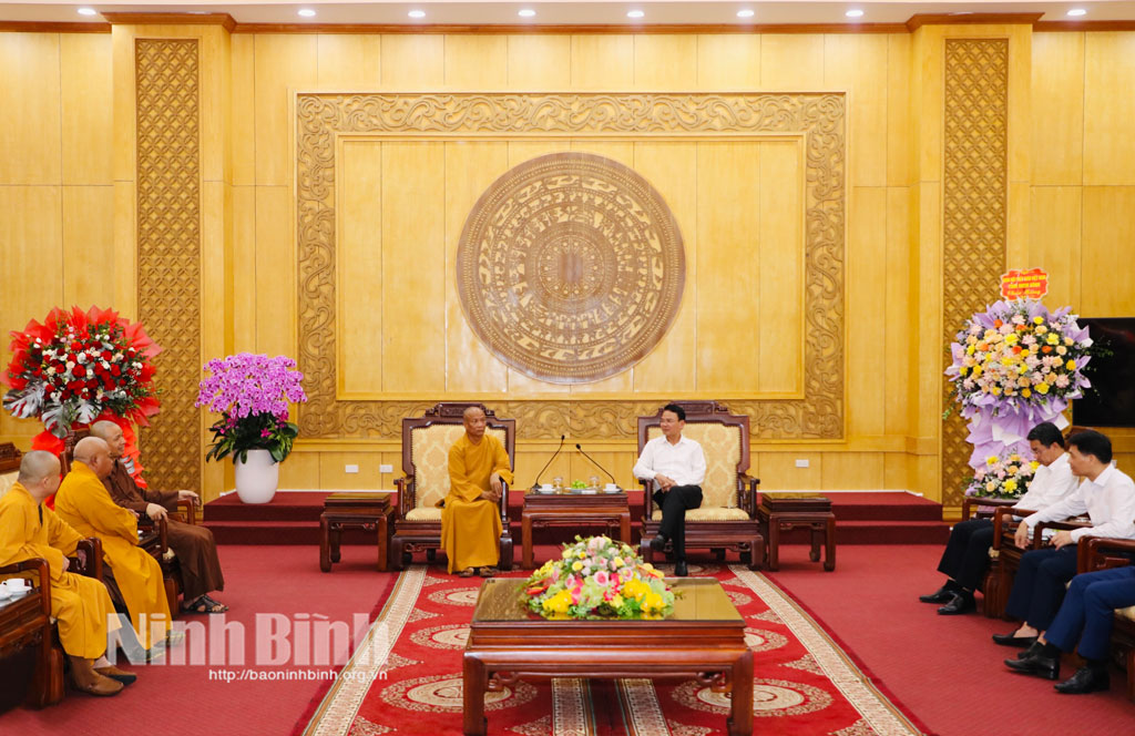 Ghi nhận những đóng góp quan trọng của các tôn giáo, trong đó có Phật giáo đối với sự phát triển của tỉnh, đồng chí Bí thư Tỉnh ủy mong muốn thời gian tới Ban Trị sự Giáo hội Phật giáo Việt Nam tỉnh tiếp tục phát huy truyền thống gắn bó, đồng hành cùng dân tộc, đặt lợi ích của quốc gia, dân tộc, Nhân dân lên trên hết, trước hết; vận động tăng ni, Phật tử thực hiện tốt các chủ trương, đường lối của Đảng, chính sách, pháp luật của Nhà nước; tích cực tham gia các phong trào thi đua yêu nước, phát triển kinh tế và đảm bảo an sinh xã hội, giữ gìn an ninh trật tự tại địa phương; nỗ lực, chung tay xây dựng khối đại đoàn kết toàn dân, xây dựng tỉnh Ninh Bình ngày càng văn minh, giàu mạnh, trở thành cực tăng trưởng mới của vùng Đồng bằng sông Hồng và trở thành thành phố trực thuộc Trung ương vào năm 2030.
