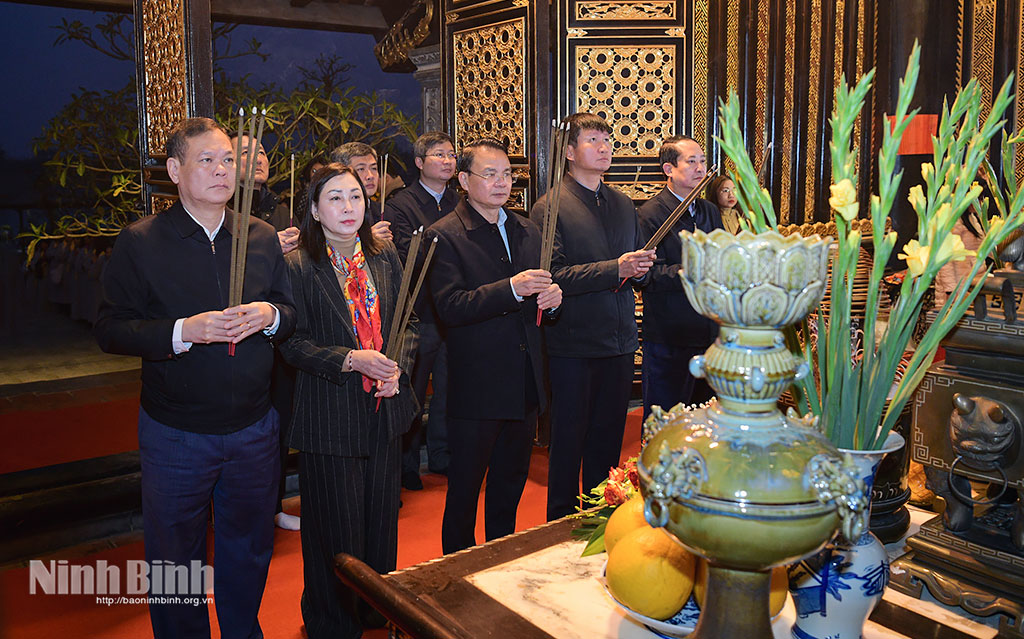 Đồng chí Đặng Xuân Phong, Ủy viên Trung ương Đảng, Bí thư Tỉnh ủy, Trưởng Đoàn đại biểu Quốc hội tỉnh và các đồng chí Thường trực Tỉnh ủy dâng hương tại chùa Bát Long cầu quốc thái dân an.