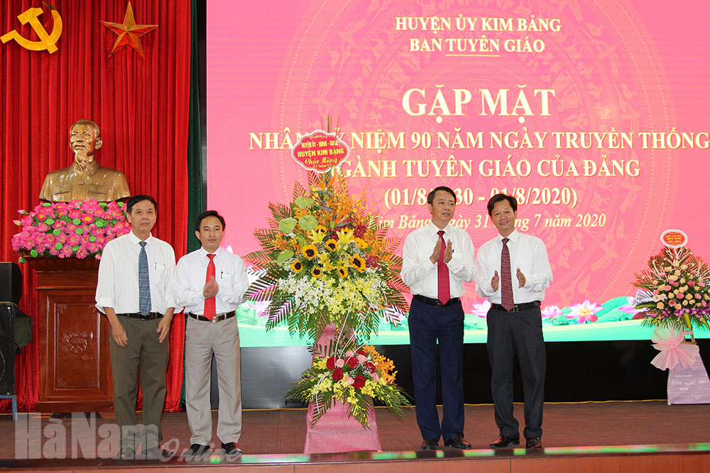 Đại diện lãnh đạo Ban Tuyên giáo Tỉnh ủy tặng hoa chúc mừng Ban Tuyên giáo Huyện ủy Kim Bảng.Đại diện lãnh đạo Huyện ủy, UBND huyện tặng hoa chúc mừng Ban Tuyên giáo Huyện ủy Kim Bảng.