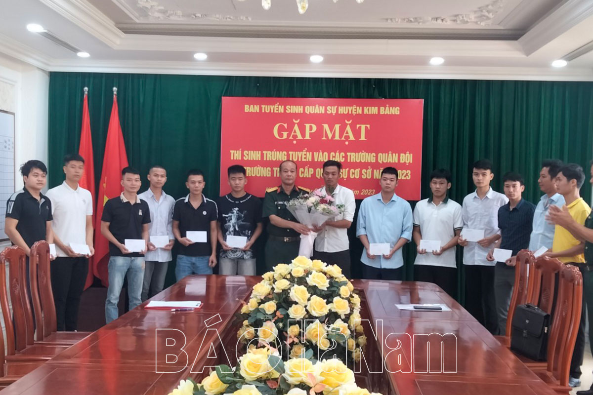 Nhằm động viên, giao nhiệm vụ cho các thí sinh trúng tuyển vào các học viện, trường đại học trong quân đội và trường trung cấp quân sự cơ sở năm 2023, Ban Tuyển sinh quân sự huyện Kim Bảng vừa tổ chức gặp mặt, động viên các thí sinh trước khi lên đường nhập học.