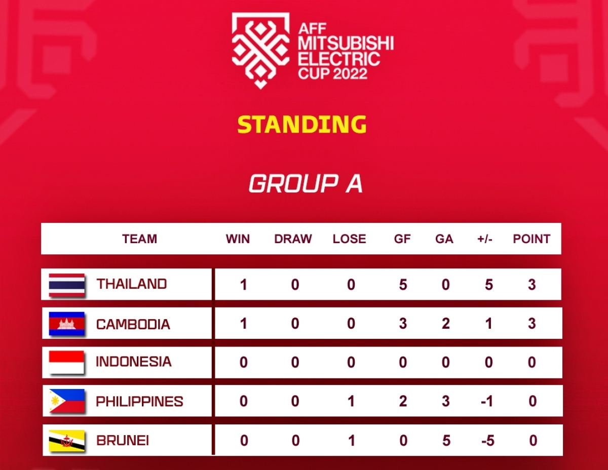 Theo bảng xếp hạng AFF Cup 2022 mới nhất sau lượt trận đầu tiên, ĐT Thái Lan và ĐT Việt Nam đều dẫn đầu bảng đấu của mình. Nếu như Thái Lan thắng 5-0 Brunei ở trận ra quân thì Việt Nam có chiến thắng 6-0 trước Lào.