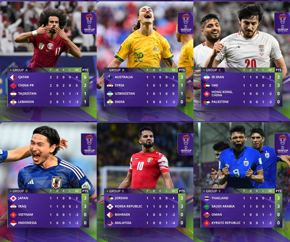 | Cập nhật bảng xếp hạng Asian Cup 2023. |