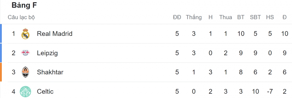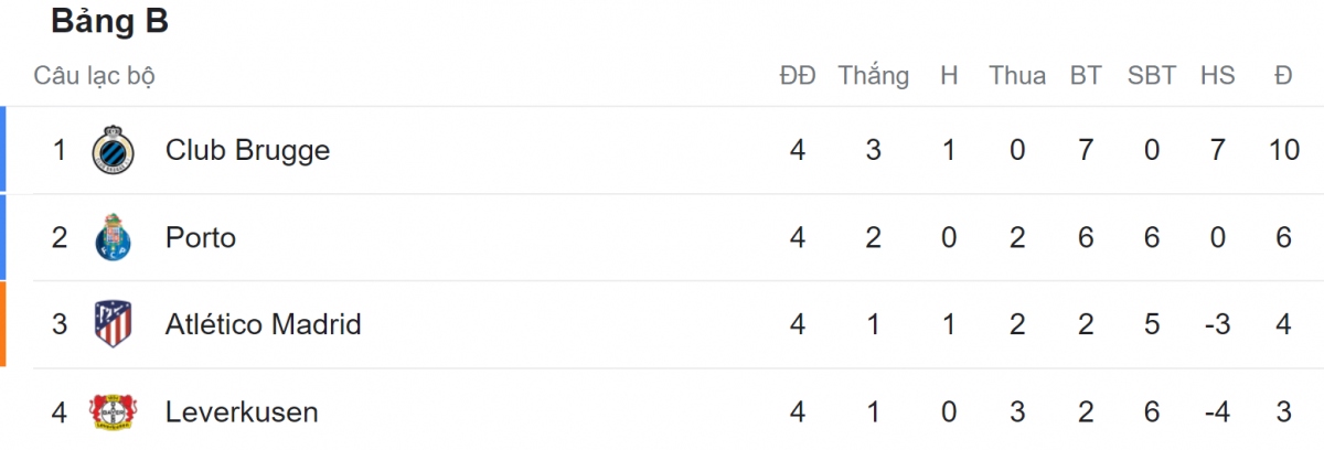Bảng xếp hạng Cúp C1 châu Âu mới nhất: 9 đội giành vé vào vòng 1/8