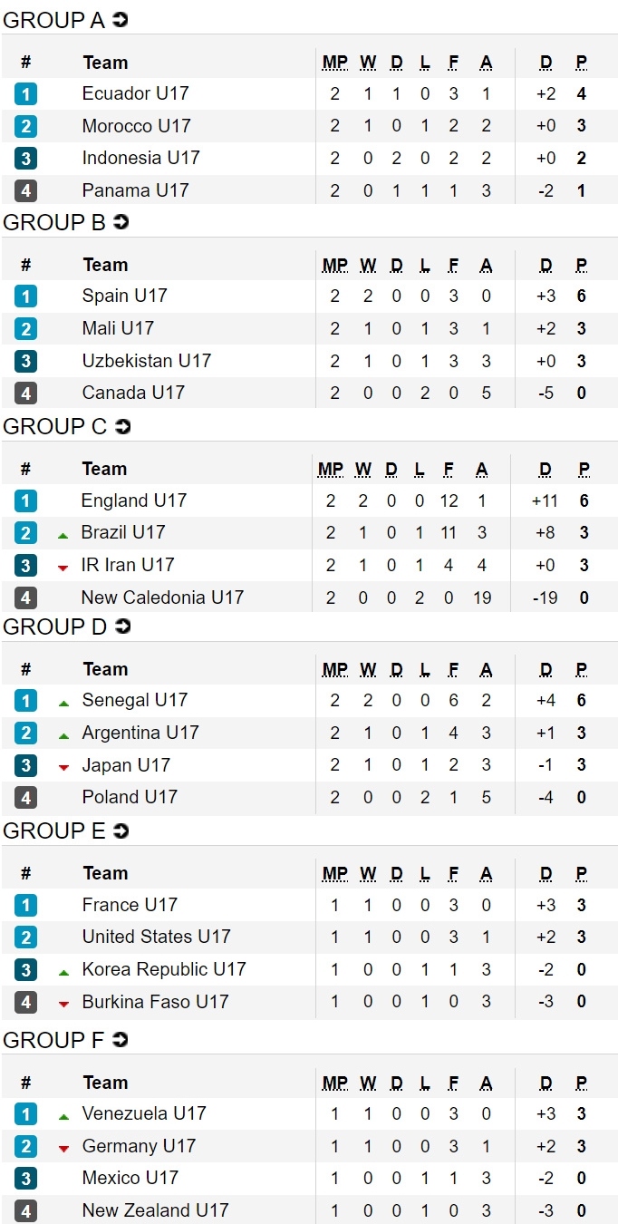 Bảng xếp hạng U17 World Cup 2023 mới nhất: Chủ nhà Indonesia làm nên lịch sử