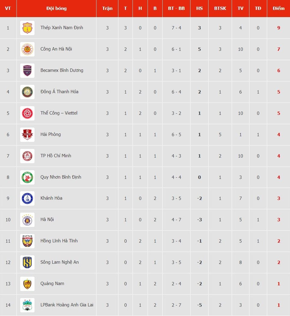 Bảng xếp hạng V-League mới nhất: Hà Nội FC đẩy HAGL xuống cuối bảng