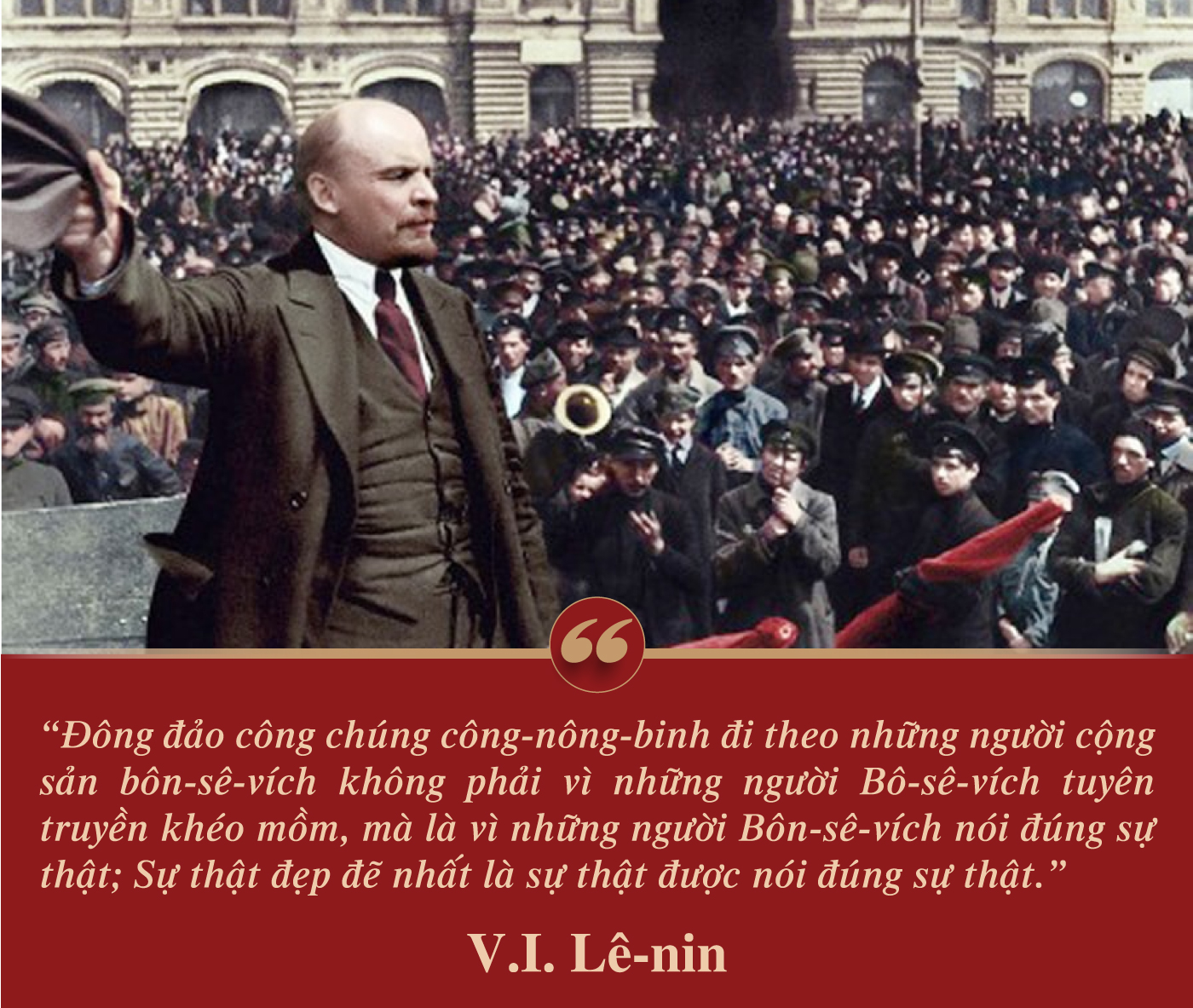 Chủ tịch Hồ Chí Minh rất quan tâm đến tuyên truyền chính trị. Người nói, chính trị có đúng thì tờ báo mới đúng được. V.I. Lênin cũng khẳng định, “Đông đảo công chúng công - nông - binh đi theo những người cộng sản Bôn-sê-vích không phải vì những người Bôn-sê-vích tuyên truyền khéo mồm, mà là vì những người Bôn-sê-vích nói đúng sự thật; Sự thật đẹp đẽ nhất là sự thật được nói đúng sự thật”.[2] Người cũng khẳng định rằng, “sự kiện, sự kiện và chỉ có sự kiện mới giúp chúng ta hiểu được những vấn đề phức tạp nhất của đời sống. Báo chí Bôn-sê-vích hãy bớt lải nhải về chính trị, mà hãy quan tâm nhiều hơn đến những sự kiện trong đời sống hàng ngày của công-nông-binh”[3].