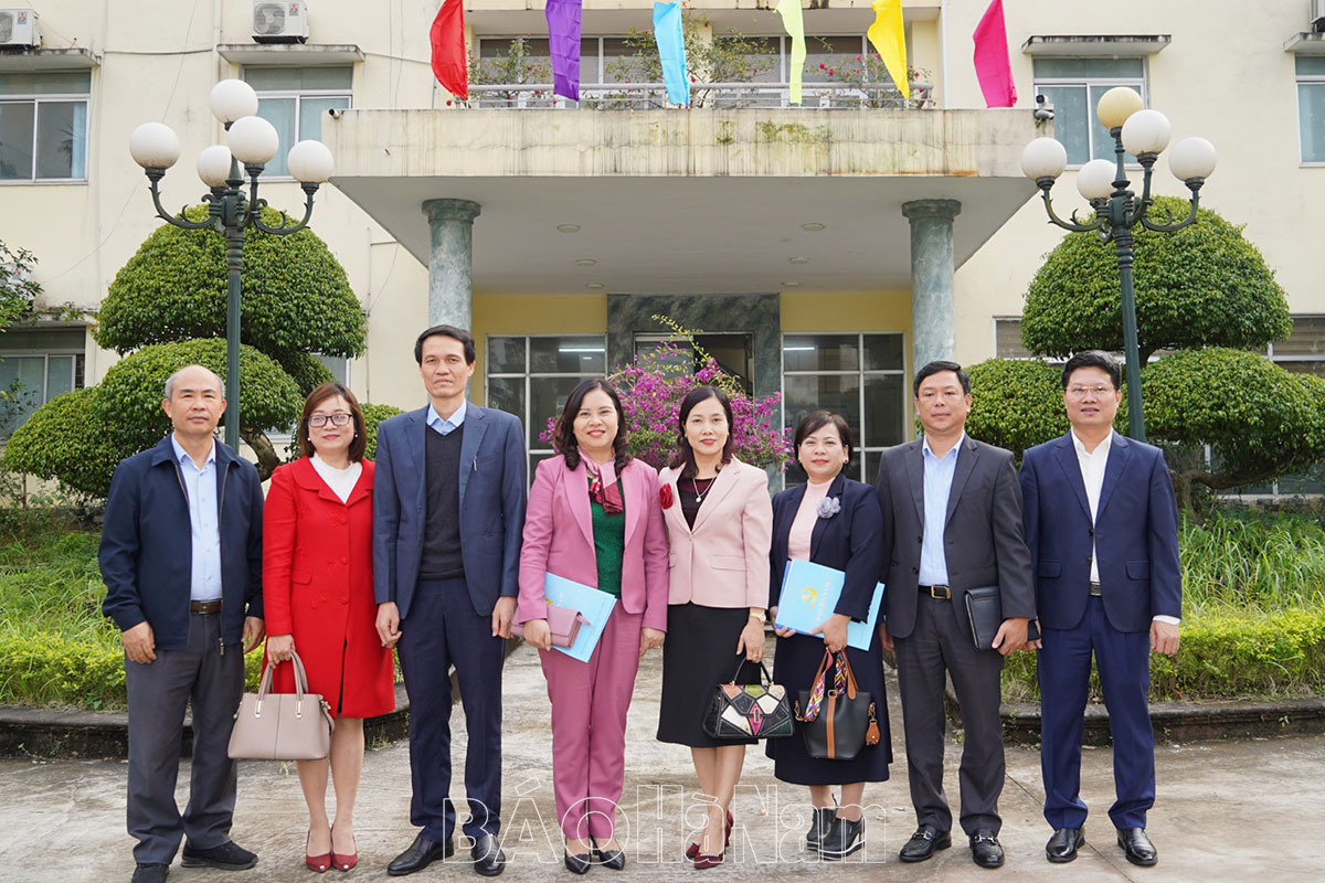 Các đại biểu chụp ảnh lưu niệm tại Trụ sở Báo Hà Nam.