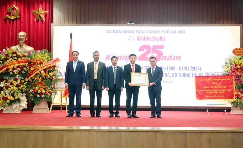 Thừa ủy quyền của Chủ tịch nước, Chủ tịch Ủy ban nhân dân thành phố Hà Nội trao Huân chương Lao động hạng Nhất cho báo Kinh tế & Đô thị.