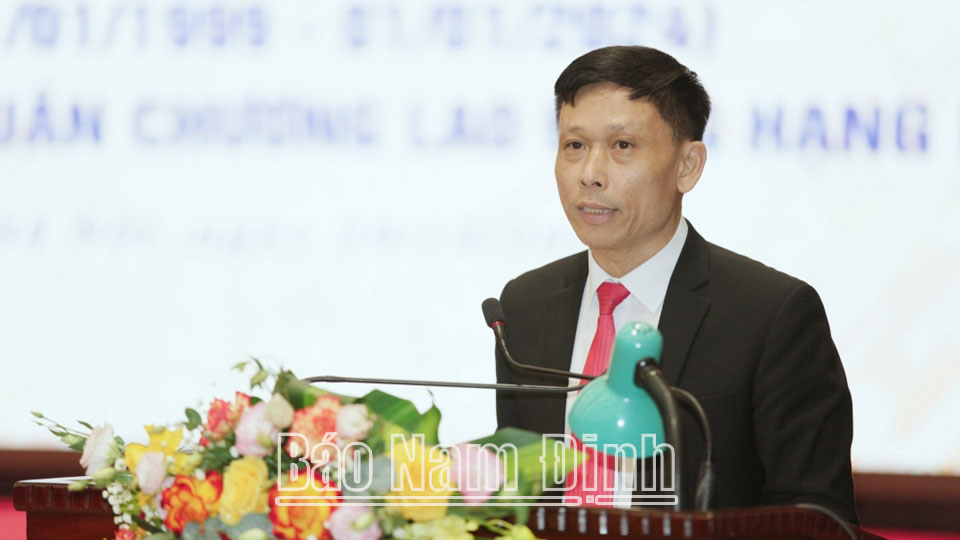 | Đồng chí Lê Quốc Minh, Ủy viên BCH Trung ương Đảng, Tổng Biên tập Báo Nhân Dân, Phó Trưởng Ban Tuyên giáo Trung ương, Chủ tịch Hội Nhà báo Việt Nam phát biểu chúc mừng tại buổi lễ. |