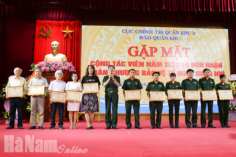 Trung tướng Nguyễn Quang Cường, Bí thư Đảng ủy, Chính ủy Quân khu trao Huân chương Bảo vệ Tổ quốc hạng Nhì cho Báo Quân khu.Thiếu tướng Nguyễn Quốc Tuấn, Chủ nhiệm Chính trị Quân khu trao thưởng cho các cá nhân có thành tích xuất sắc trong công tác phối hợp tuyên truyền báo chí (giai đoạn 2017-2020).