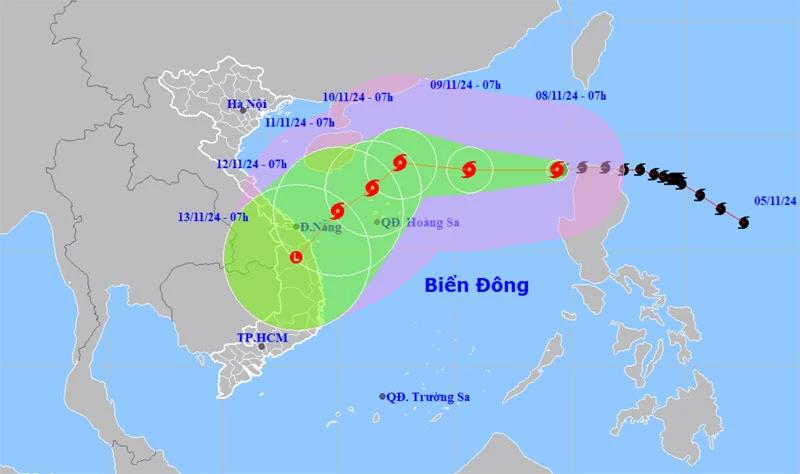 Dự báo, đến 7 giờ ngày 9/11, vị trí tâm bão số 7 ở vào khoảng 18,5 độ vĩ bắc; 115,7 độ kinh đông, trên khu vực bắc Biển Đông, cách quần đảo Hoàng Sa khoảng 510km về phía đông bắc. Sức gió mạnh nhất vùng gần tâm bão mạnh cấp 13, giật cấp 16. Bão di chuyển theo hướng tây, tốc độ 15-20km/giờ.