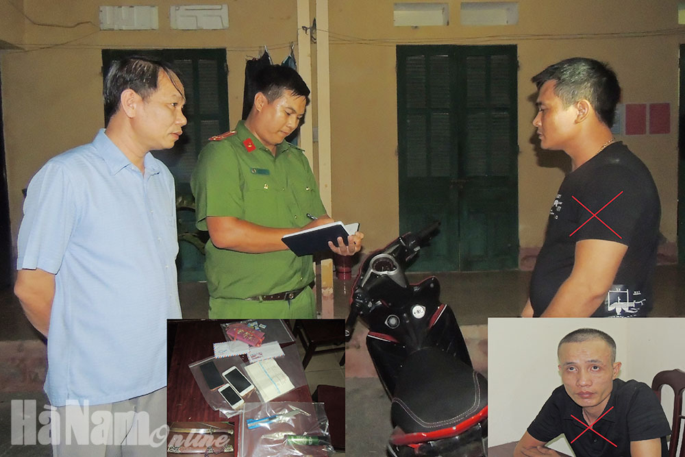 Thượng tá Nguyễn Xuân Hòa – Trưởng Công an thị xã Duy Tiên (Hà Nam) trực tiếp chỉ đạo CBCS lấy lời khai đối tượng Thắng, Tuấn (dấu X).