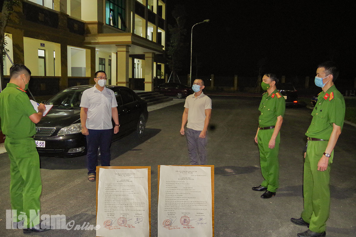 Ngày 14/9, Công an thị xã Duy Tiên cho biết đã ra Lệnh giữ người trong trường hợp khẩn cấp và Lệnh bắt người bị giữ trong trường hợp khẩn cấp đối với Lưu Ngọc Hiền (SN 1984) và Ngô Ngọc Khôi (SN 1987) cùng trú ở huyện Đông Anh (Hà Nội) về hành vi “Làm giả con dấu, tài liệu cơ quan, tổ chức”.