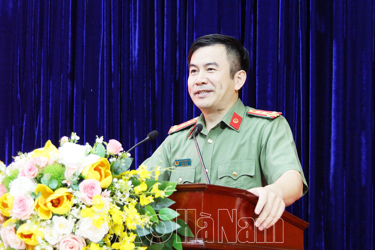 Đại tá, Phó Giáo sư, Tiến sỹ Nguyễn Trung Kiên, Trưởng khoa An ninh chính trị nội bộ- Học viện An ninh truyền đạt nội dung tại hội nghị.