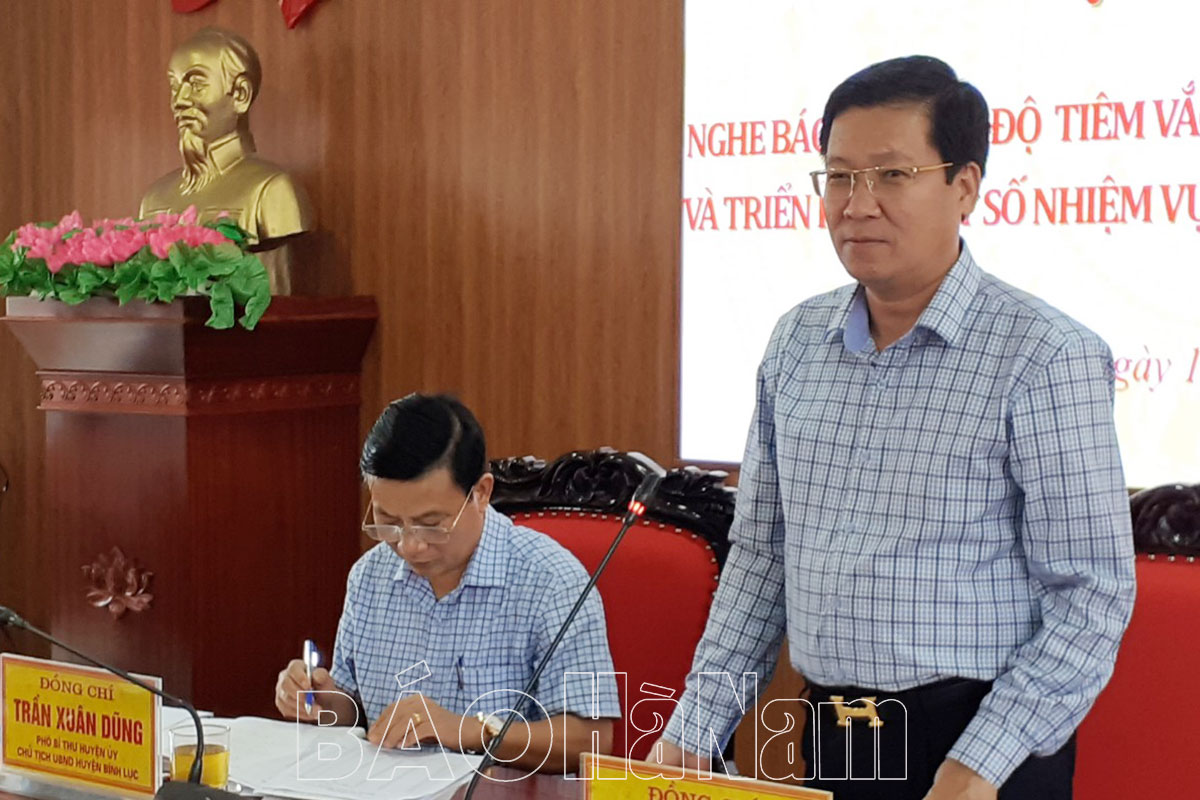 Theo báo cáo của BCĐ huyện, thời gian qua Huyện ủy, UBND, BCĐ phòng, chống dịch Covid-19 huyện Bình Lục đã quán triệt, triển khai thực hiện nghiêm túc, nhất quán các văn bản chỉ đạo của Chính phủ, Thủ tướng Chính phủ, hướng dẫn của Bộ Y tế; các quy định, hướng dẫn của các cấp về công tác phòng, chống dịch. Tập trung lãnh đạo, chỉ đạo, tổ chức thực hiện nghiêm, quyết liệt, hiệu quả Chiến dịch tiêm chủng vắc xin Covid-19; Đẩy mạnh tuyên truyền về công tác phòng, chống dịch Covid-19 tới các cấp, ngành, cán bộ, đảng viên và các tầng lớp nhân dân; Chỉ đạo các cơ quan, ban ngành, đoàn thể, UBND các xã, thị trấn và từng người dân tăng cường cảnh giác, tuyệt đối không được lơ là, chủ quan với dịch bệnh; nêu cao ý thức, trách nhiệm vì sức khỏe cộng đồng và cá nhân thực hiện quyết liệt, nghiêm túc các biện pháp phòng, chống dịch.