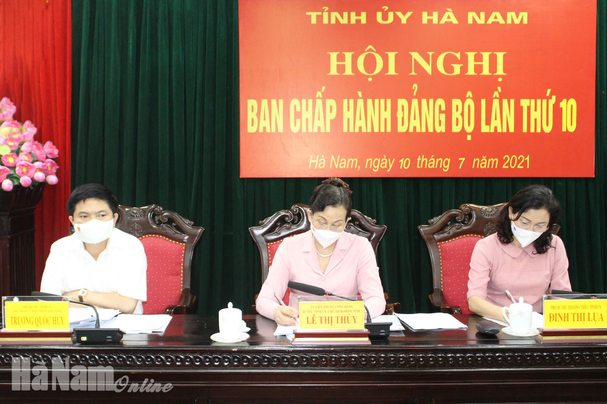 Phát biểu kết luận hội nghị, đồng chí Lê Thị Thủy, Ủy viên Trung ương Đảng, Bí thư Tỉnh ủy, Trưởng đoàn đại biểu Quốc hội tỉnh khóa XIV, Chủ tịch HĐND tỉnh nhấn mạnh: 6 tháng cuối năm 2021, năm đầu thực hiện nghị quyết đại hội Đảng các cấp, do vậy các đồng chí ủy viên BCH Đảng bộ tỉnh, cấp ủy, chính quyền, MTTQ, các đoàn thể chính trị tiếp tục đề cao trách nhiệm, tận tâm, tận lực, gương mẫu, chủ động, sáng tạo tổ chức thực hiện các nhiệm vụ, công việc được giao. Triển khai thực hiện nghiêm túc Nghị quyết Đại hội Đảng toàn quốc lần thứ XIII, Nghị quyết Đại hội Đảng bộ tỉnh lần thứ XX, các nghị quyết, chỉ thị, quy định, kết luận… của Trung ương.