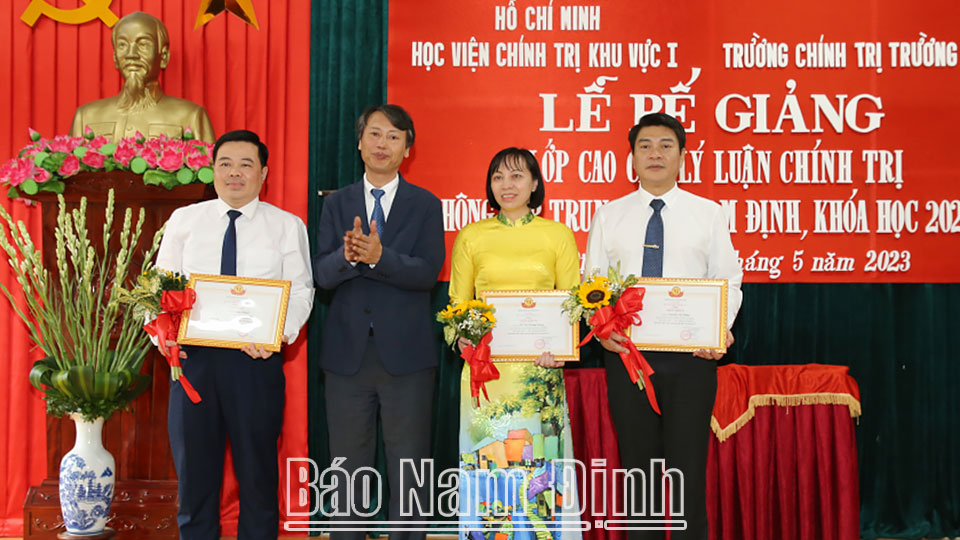 Chiều 24-5, Học viện Chính trị Khu vực I (Học viện Chính trị quốc gia Hồ Chí Minh) phối hợp với Tỉnh ủy Nam Định tổ chức Lễ bế giảng lớp Cao cấp lý luận chính trị hệ không tập trung tỉnh Nam Định, khoá học 2021-2023. Tới dự có các đồng chí: Phó Giáo sư, Tiến sĩ Hoàng Văn Hoan, Phó Giám đốc Học viện Chính trị khu vực I; Nguyễn Văn Va, Ủy viên Ban TVTU, Trưởng Ban Tổ chức Tỉnh ủy.