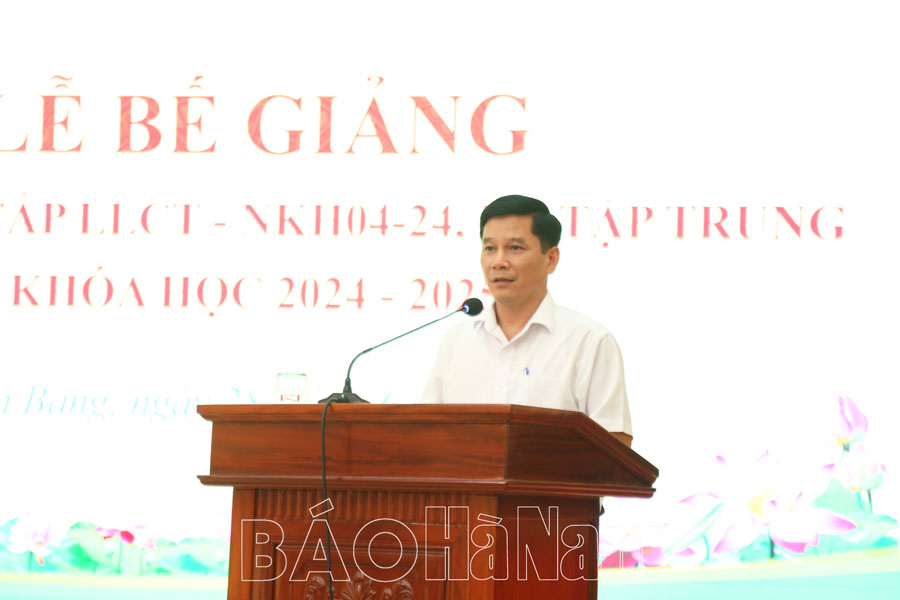 Sáng 28/6, Trường Chính trị tỉnh phối hợp cùng Thị ủy Kim Bảng tổ chức bế giảng lớp Trung cấp lý luận chính trị NKH04 - 24 hệ tập trung, khóa học 2024 - 2025.