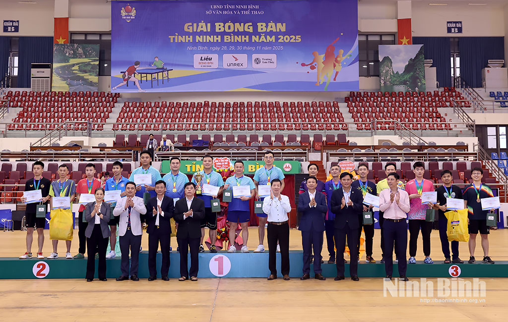 Chiều 30/11, tại Trung tâm thể dục thể thao tỉnh, Sở Văn hoá và Thể thao tổ chức bế mạc Giải Bóng bàn tỉnh Ninh Bình năm 2025. Dự chương trình có lãnh đạo Sở Văn hoá và Thể thao; Trung tâm thể thao I, II; Liên đoàn Bóng bàn tỉnh; các nhà tài trợ; các vận động viên (VĐV) tham gia Giải.